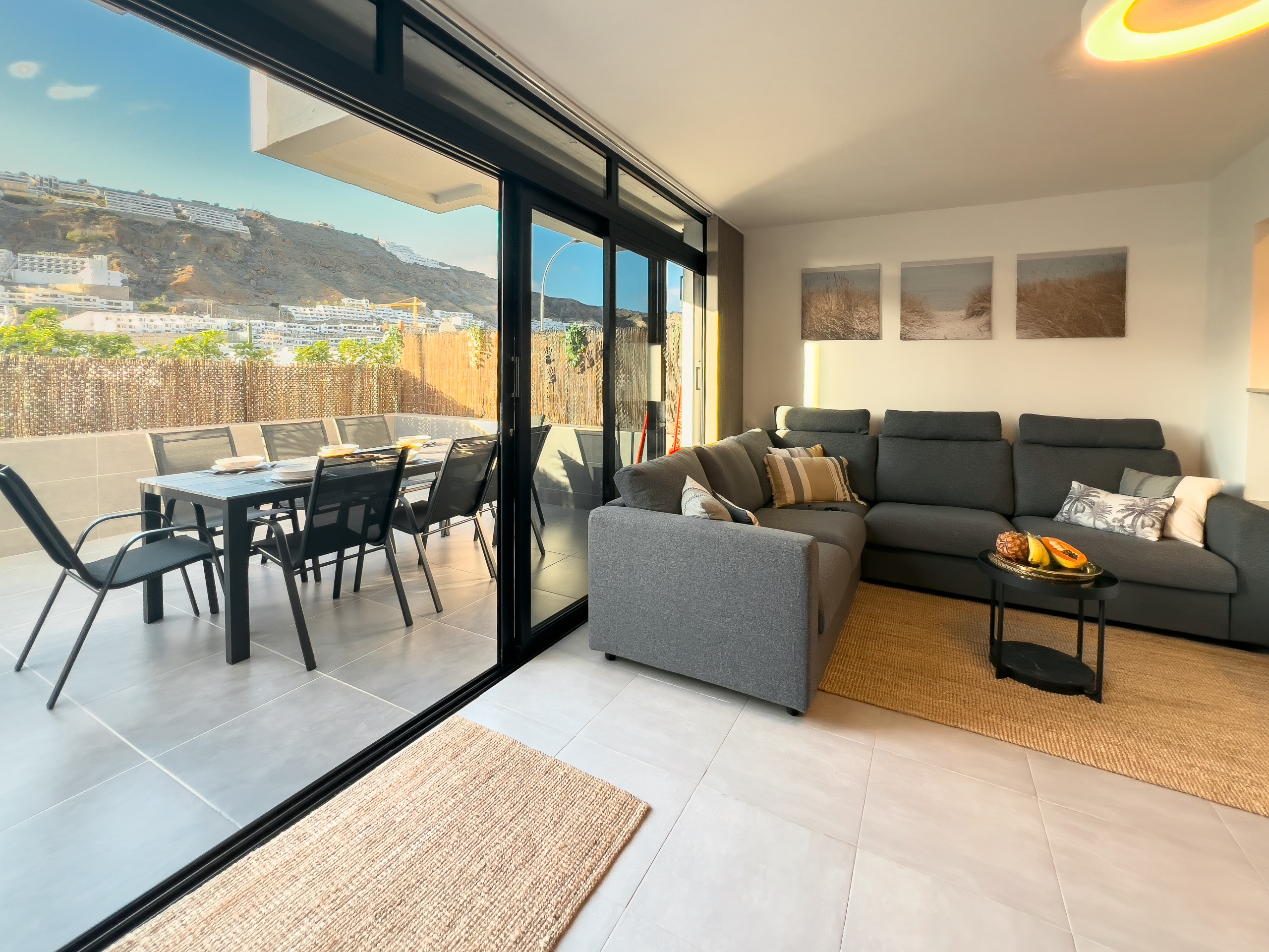 Experience the Canarian feeling in the heart of Puerto Rico at the Golden Sun Residence in a freshly renovated, super apartment with partial ocean view, where comfort and atmosphere meet in perfect harmony.