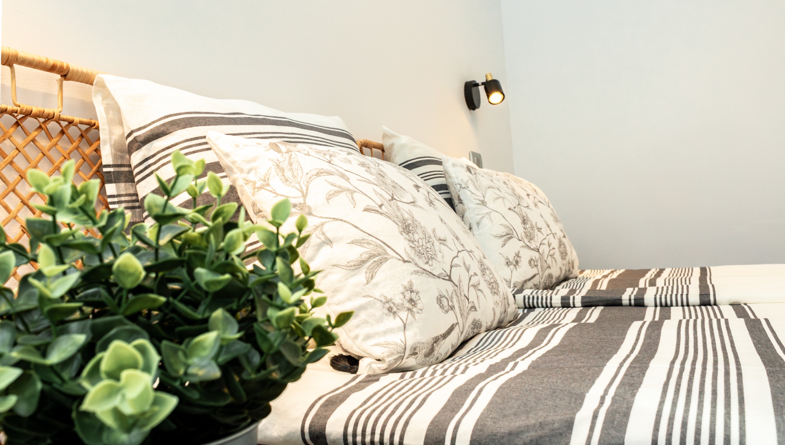 The three bedrooms and two bathrooms satisfy every need, and the complete equipment guarantees a carefree rest: brand new household appliances, washer-dryer, dishwasher, 75″ TCL Google TV, motorized awning, unlimited internet, and large beach towels await the guests. The living room sofa can be converted into an additional bed, making it ideal for the needs of even larger groups.
