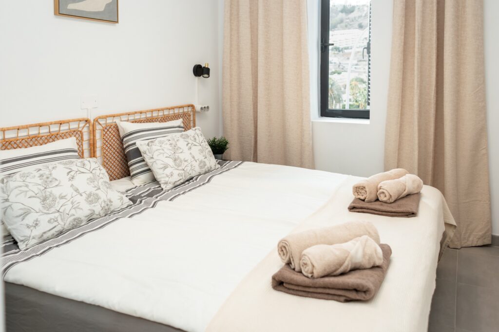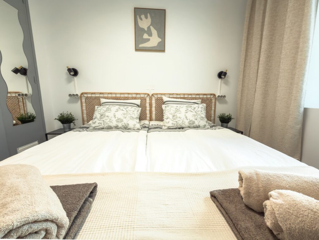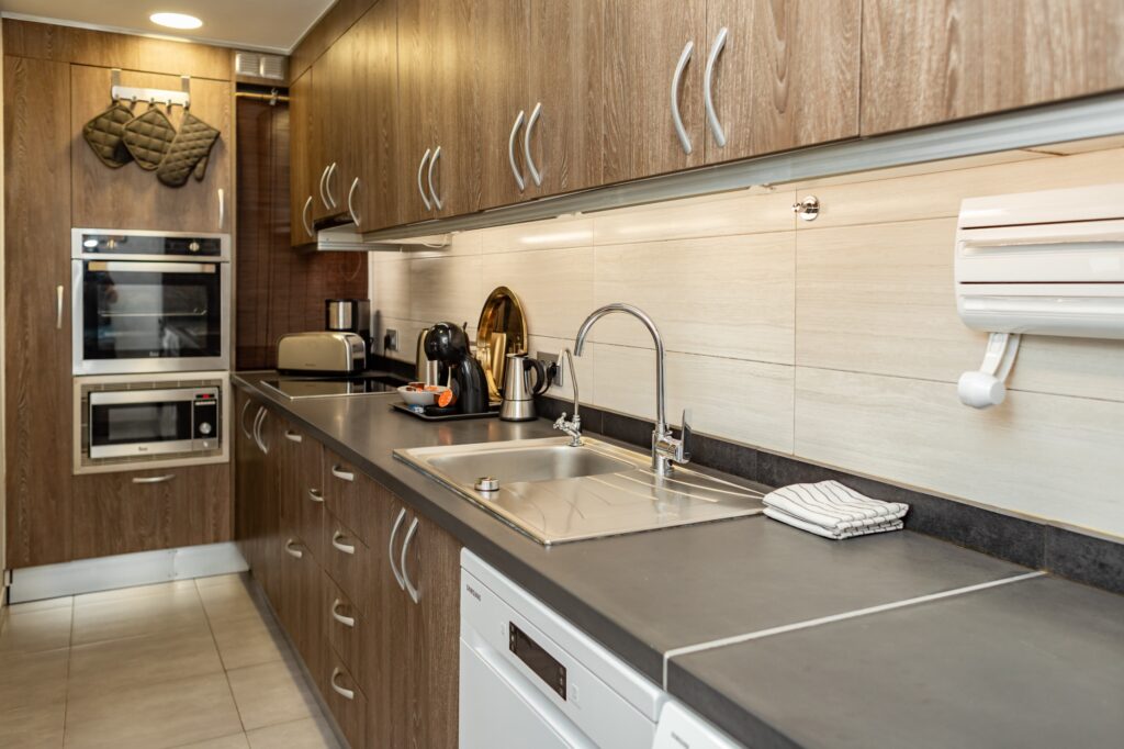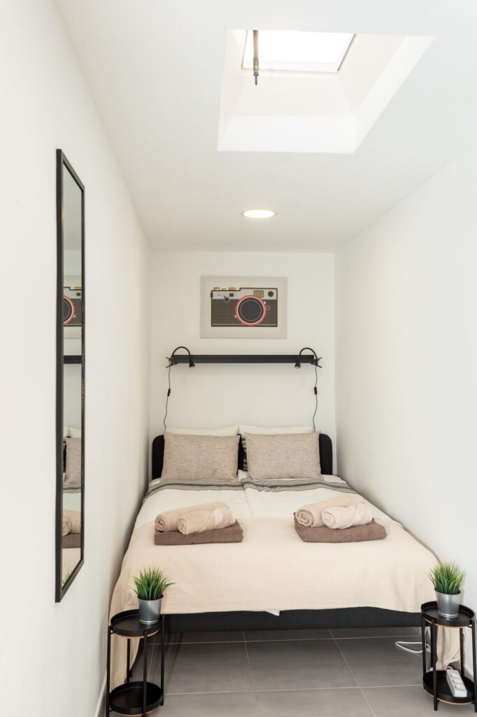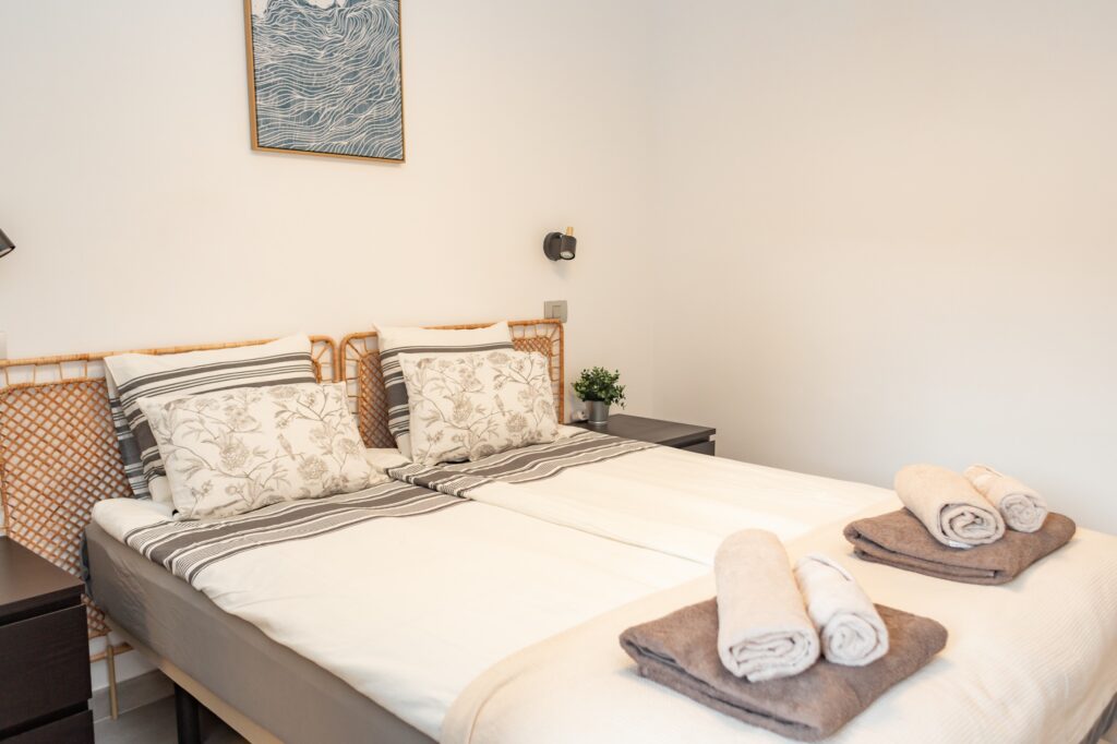 Két nagyobb és egy kisebb hálószoba, a két fürdőszobával minden igényt kielégít, a teljes felszereltség pedig garantálja a gondtalan pihenést: vadonatúj háztartási gépek, mosó-szárítógép, mosogatógép, 75″-os TCL Google TV, motoros napellenző, korlátlan internet és nagyméretű strandtörölközők várják a vendégeket. A nappali kanapé további ággyá alakítható, így, még nagyobb társaságok igényeinek is ideális.
