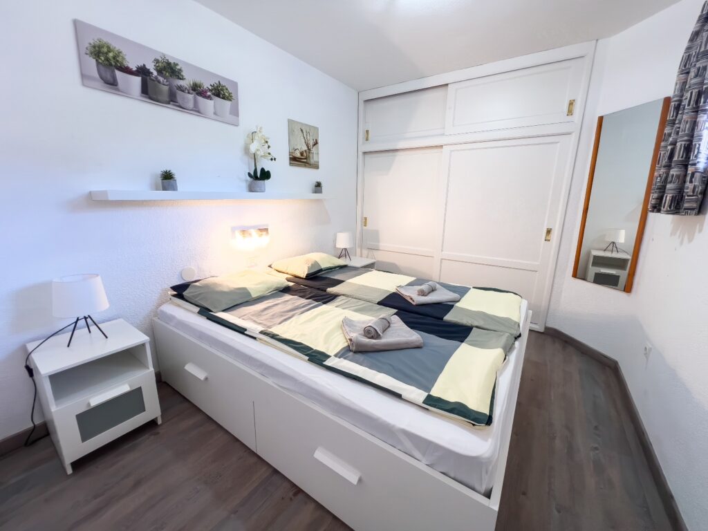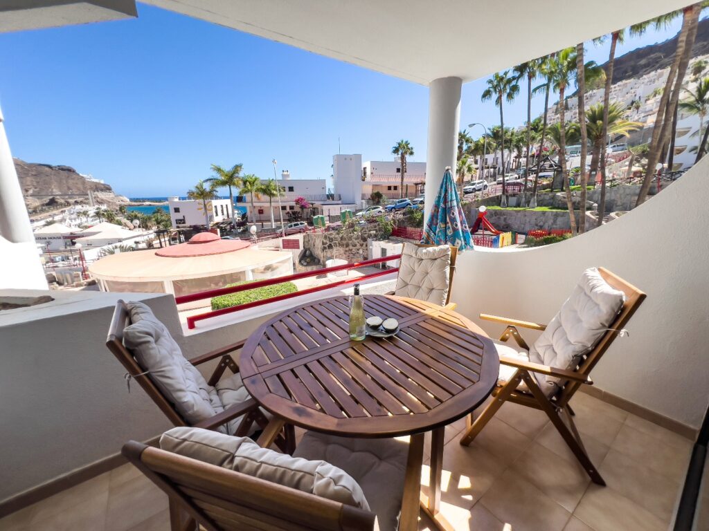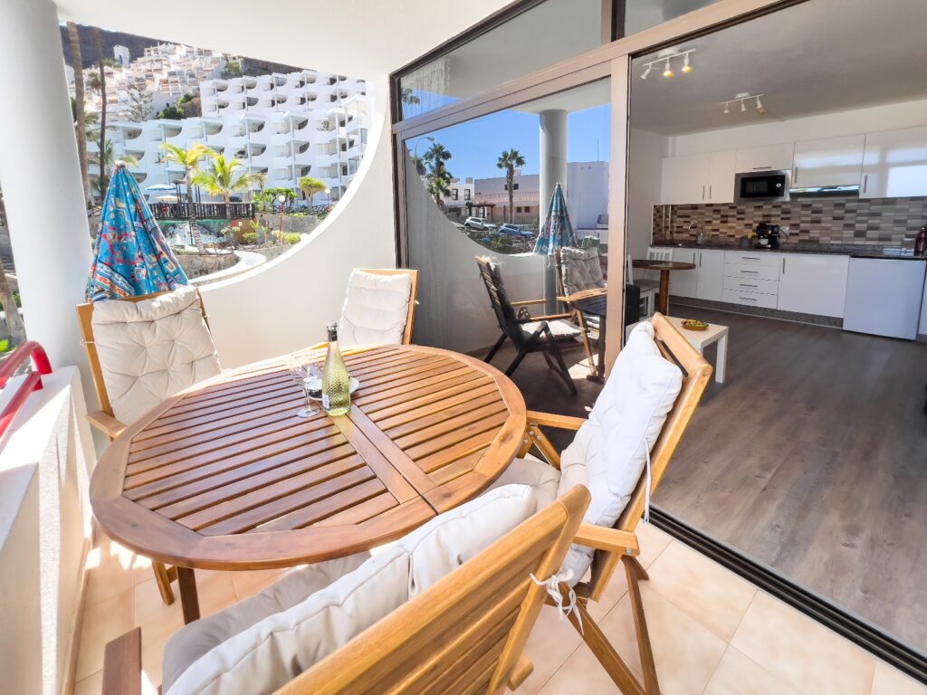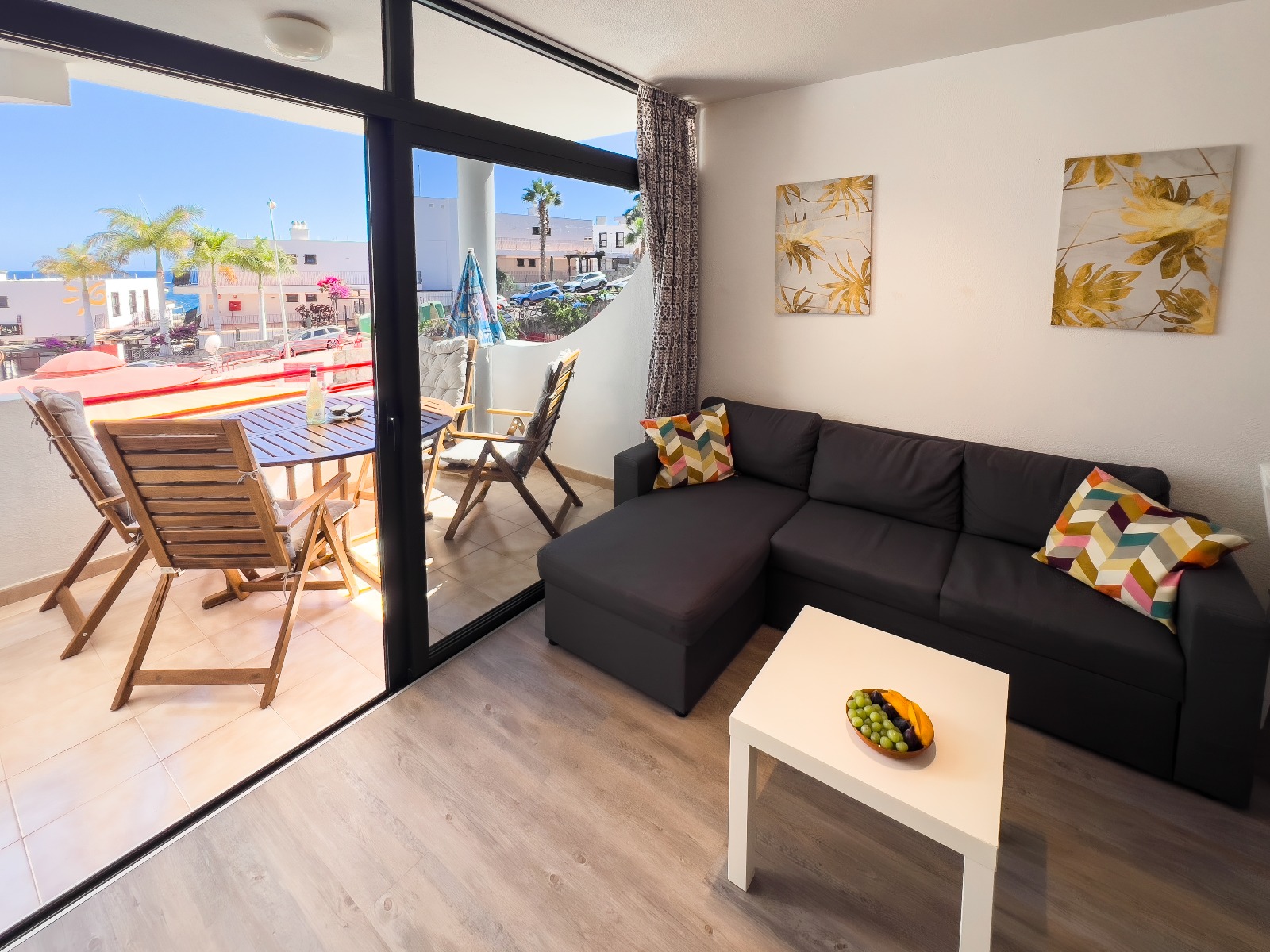 Igényesen berendezett, egy hálószobás, egy fürdőszobás, teraszos lakás, kilátással a mediterrán kertre és az óceénra, 3perc sétára Playa del Cura partjától. Az apartmanban mosógép, internet, ágyneműk, törölközők és strandtörölközők is rendelkezésre állnak a vendégeknek. A komplexumban medence, gyerekmedence és csúszda is található. A közeli bevásárlóközpontban, éttermek és vásárlási lehetőség, mellette taxi és buszmegálló mindössze gyalog 1 perc alatt elérhető. A parkolás az utcán, az épület előtt ingyenes.