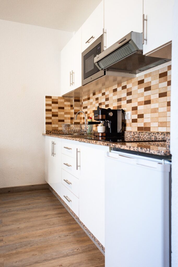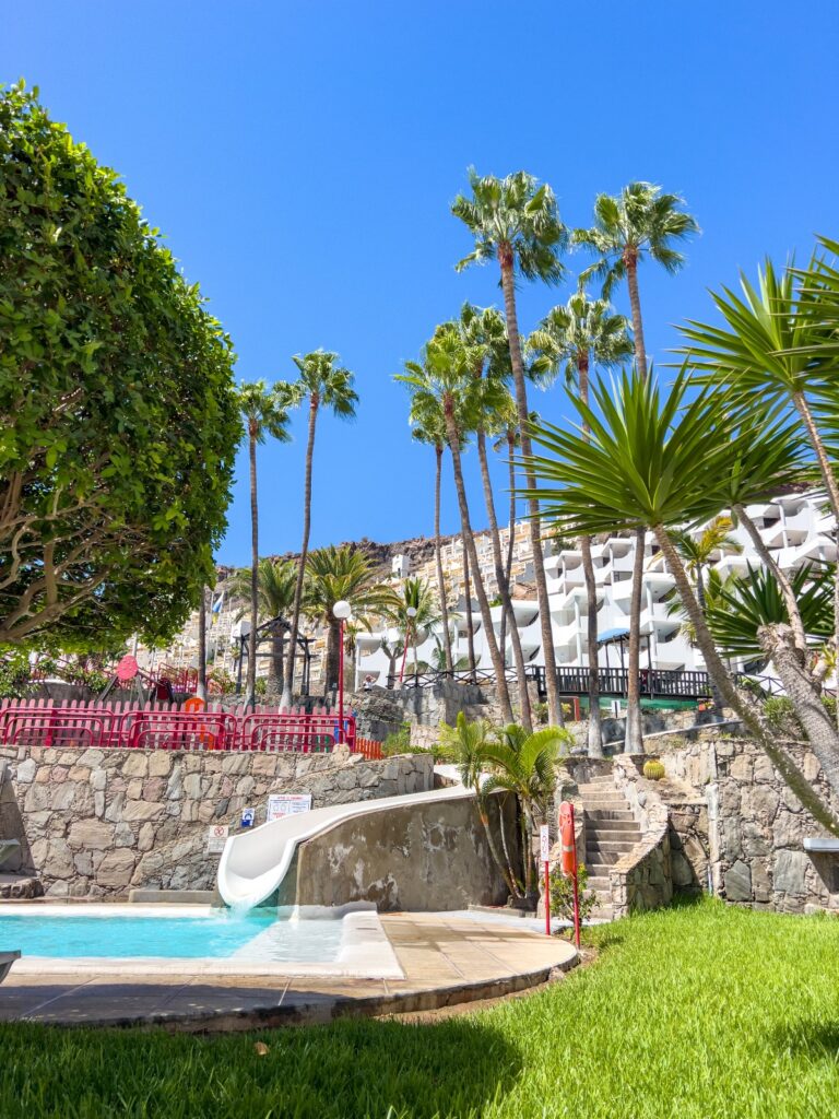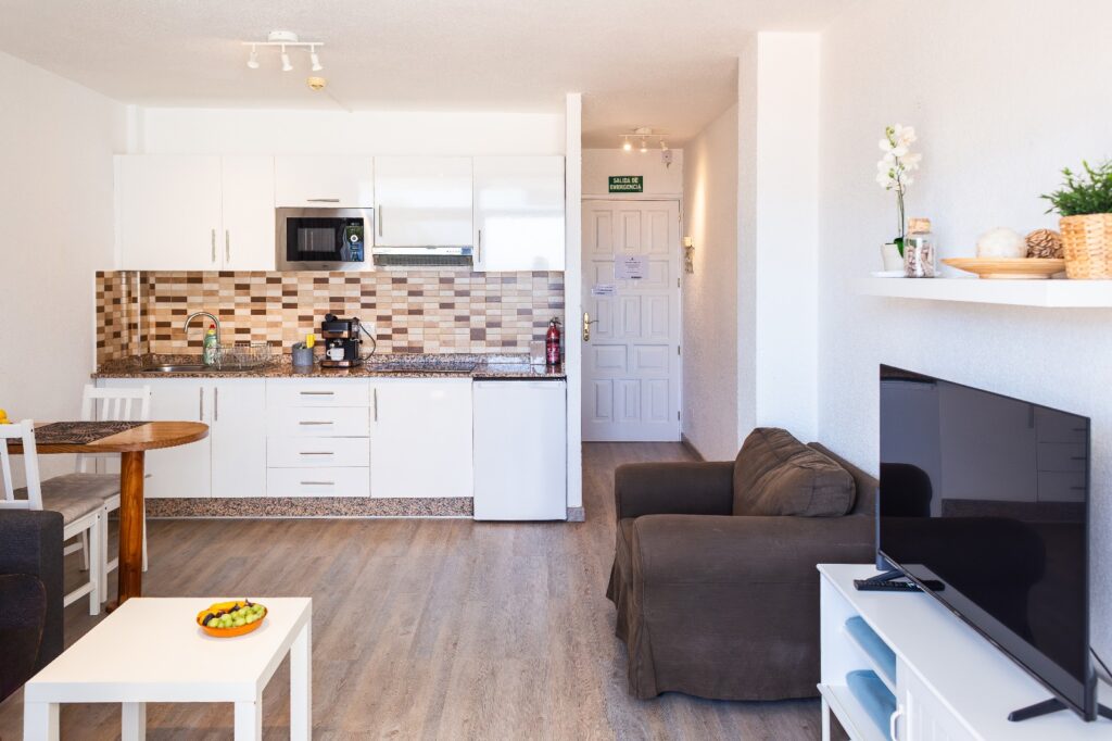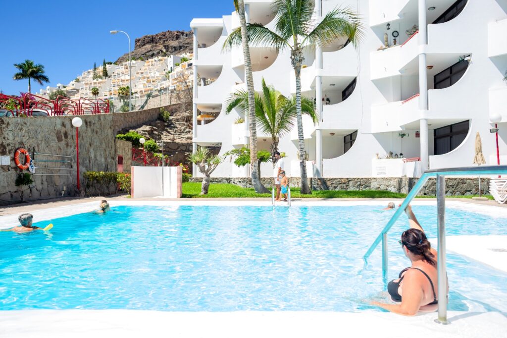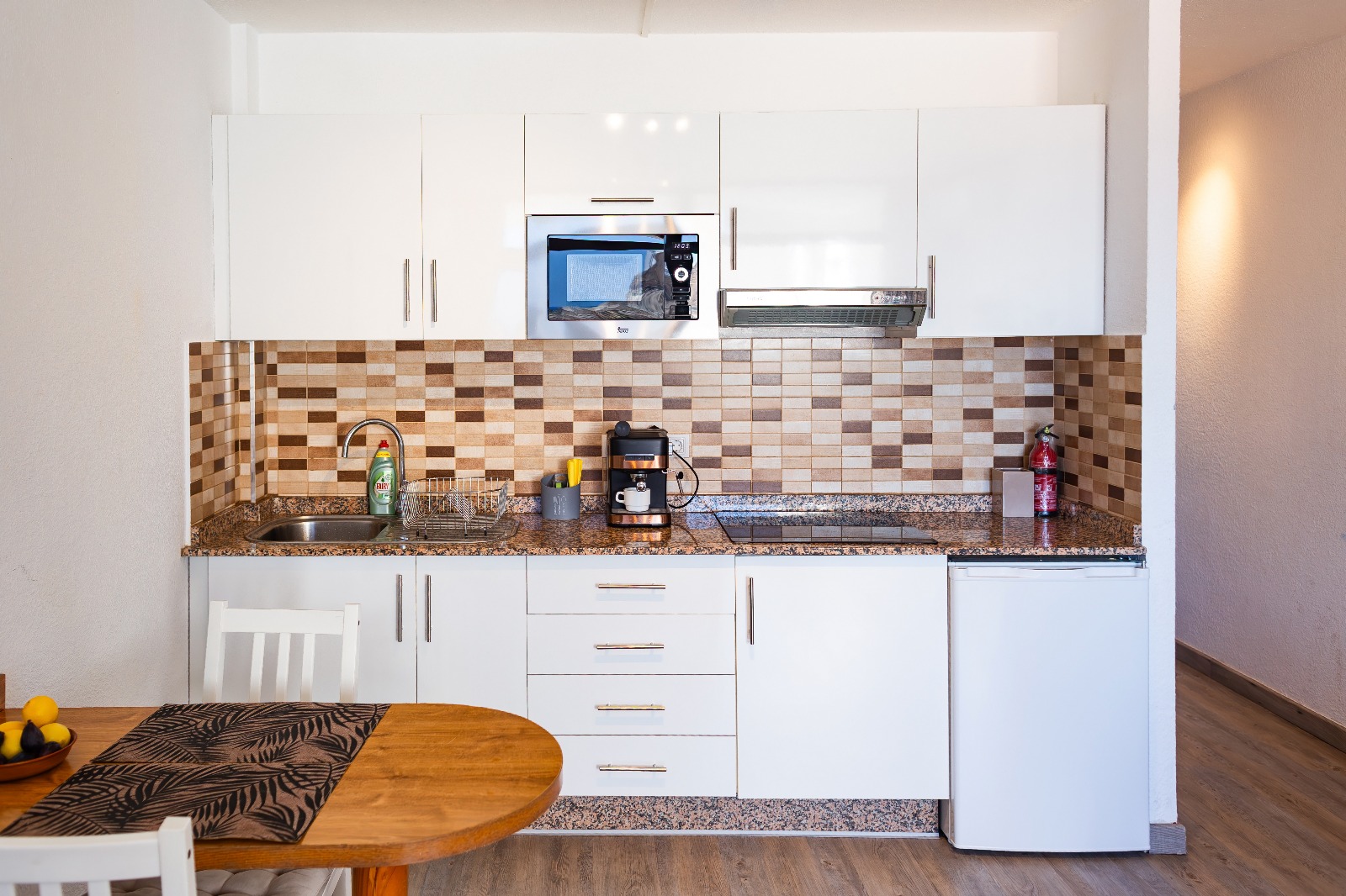 Igényesen berendezett, egy hálószobás, egy fürdőszobás, teraszos lakás, kilátással a mediterrán kertre és az óceénra, 3perc sétára Playa del Cura partjától. Az apartmanban mosógép, internet, ágyneműk, törölközők és strandtörölközők is rendelkezésre állnak a vendégeknek. A komplexumban medence, gyerekmedence és csúszda is található. A közeli bevásárlóközpontban, éttermek és vásárlási lehetőség, mellette taxi és buszmegálló mindössze gyalog 1 perc alatt elérhető. A parkolás az utcán, az épület előtt ingyenes.
