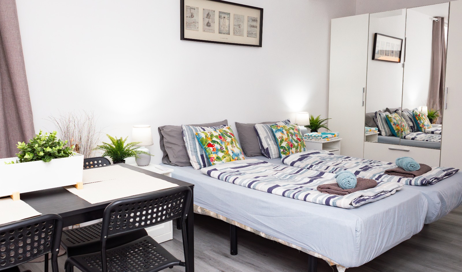 Az apartman 2 fürdőszobás, 2 szobás plusz nappalis, nagy teraszos. A szálláshelynek két külön bejárata van és 2 lakrészre bontható: egy stúdió és egy másfél szobás lakásra (külön fürdővel mindkettőben). A szálláshelyen mosógép, internet, ágyneműk, törölközők és strandtörölközők is rendelkezésre állnak a vendégeknek. A parkolás az utcán, az épület előtt ingyenes.